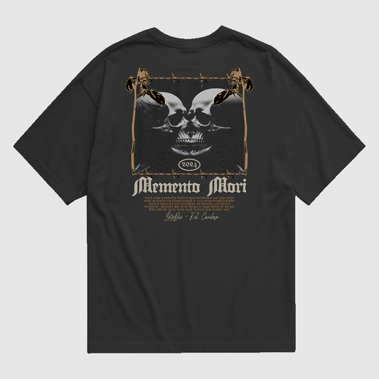 Camiseta Oversized Preta "Memento Mori - Edição Gold (15 Milhões de Plays)"