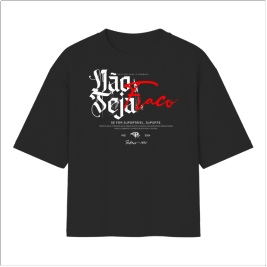 Camiseta Oversized Preta "Nascido Para o Combate - Não Seja Fraco"