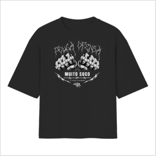 Camiseta Oversized Preta "Pouca ofensa muito soco - Guerra"